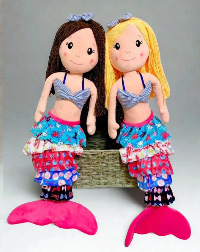 These gorgeous mermaids will steal any little girl's heart!  They are so large, and so bright, stylish, and cheerful.  They are beautiful to display, and also wonderful to hold.  The body has a decently heavy weight to it, and the tail is lightly weighted with two small sacks of poly pellets.  We have 3 options to choose from - dark hair, blonde hair, and reddish-brown hair.  Each weighs 2.2lbs.
