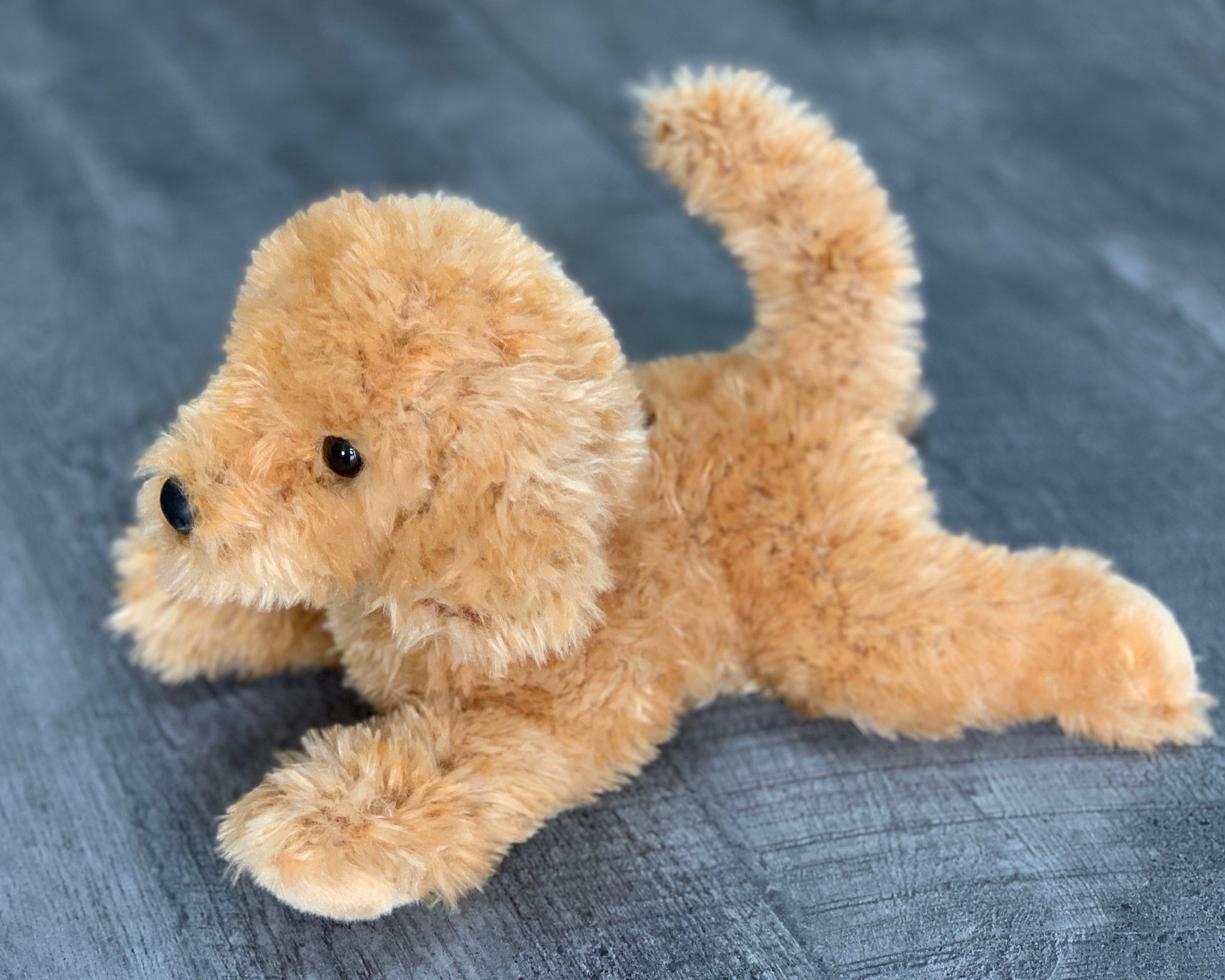 This baby-soft, floppy labradoodle is made for cuddles. At 15" in a relaxed lay-down pose, it’s the perfect lap/desk or travel companion. Weighted up to 3 lbs with glass microbeads.