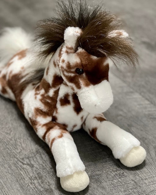 Meet your new ultra-soft calming companion—our weighted Appaloosa Horse plush. This medium-sized beauty arrives in a relaxed laying pose with a luxurious brown-and-white coat, plush mane, and fluffy tail. The fabric is exceptionally baby-soft, making it irresistibly squishy and floppy for soothing sensory input or cozy snuggles.