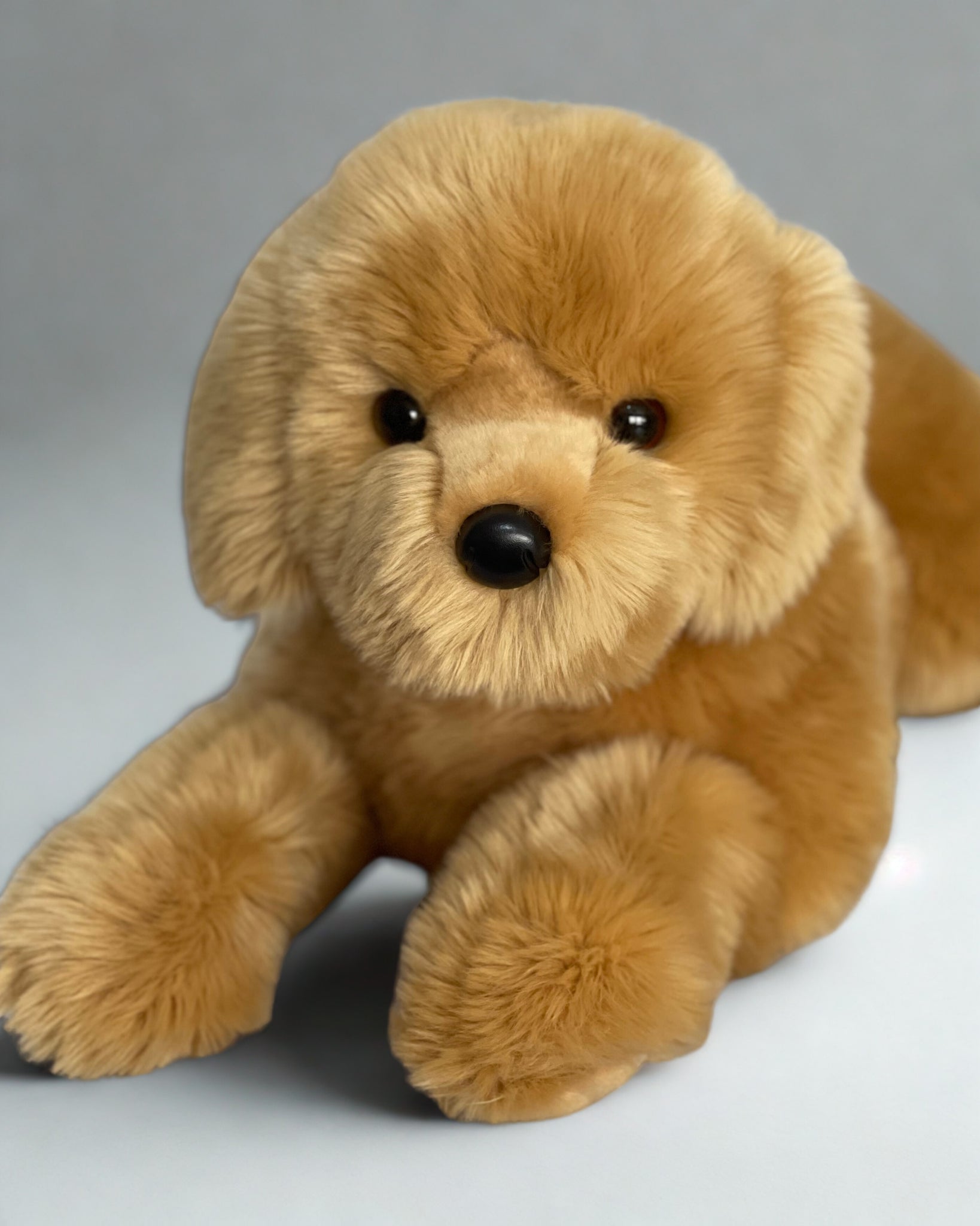 This floppy, lifelike Golden Retriever brings instant calm. At 30" paw-to-paw (≈ 26" body without hind legs), it rests naturally across your lap or chest. We can weight it up to 18 lbs; many adults enjoy ~14–16 lb for a cozy, grounded feel.