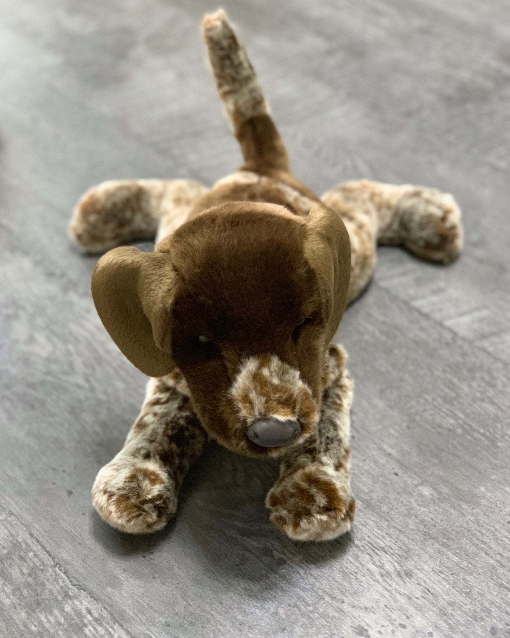 This soft, cuddly German Pointer is the perfect lap buddy. At 15", it’s great for calm at home, school, or on the go. Weighted up to 3 lbs with glass microbeads.